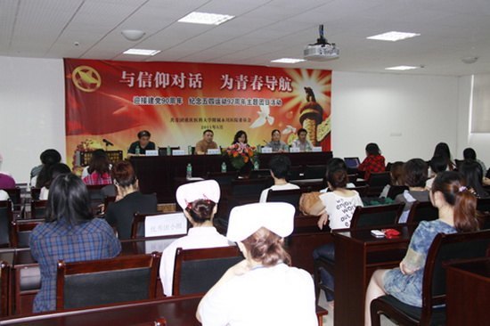 为迎接建党90周年,引导全院团员青年积极参与到“学党史、知党情、跟党走”主题教育活动中来。5月12日,附属永川医院在综合楼二楼会议室举行“与信仰对话,为青春导航”主题团日活动。医院党委书记李克用、常务副院长龚放,副院长唐玲、张正洪、刘北忠及王代永调研员参加了主题团日活动。全院团员青年代表、学生代表100余人参加了主题团日活动。