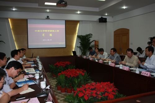 座谈会之前,代表团观看了《本色中南》的宣传片。中南大学科研部吴厚平副部长从特色优势、组织研究、创新发展三个方面介绍了中南大学的基本情况。