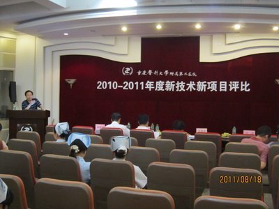 2011年8月18日下午,附二院医务处、护理部组织召开2010年至2011年度新技术、新项目评比会议,医院特邀第三军医大学新桥医院两位临床专家和西南医院护理专家担任此次评比会的评审专家。副院长梅浙川出席会议。