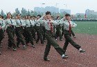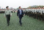 中科院院士、校长申长雨在军训团团长张彦波中校的陪同下检阅了新生军训方队。