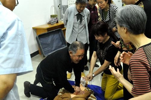 随着老年社会的到来,离退休人员进入到“双高期”(高龄期、高发病期)的实际,离退休工作处每学期面向离退休老同志组织开展一次健康知识讲座,提高离退休老同志自我预防、自我救助能力。本次主讲的心肺功能复苏是针对呼吸心跳停止的急症危重病人,通过胸外按压或其他方式形成暂时的人工循环并恢复心脏的自主搏动和循环的急救关键措施,其目的是开放气道、重建呼吸和循环。