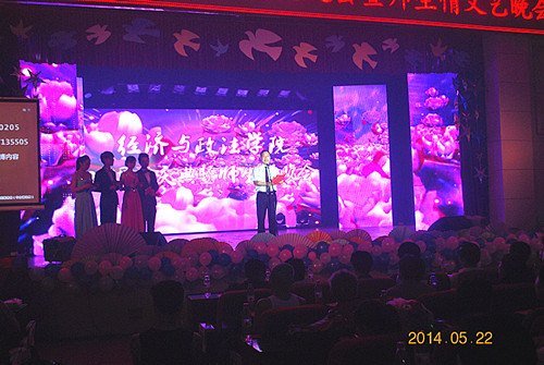 舞蹈《绝世恋人》、《傣家小妹走过来》体现了经政学院近年来招收的少数民族学生中能歌善舞的一面,语言类节目《姑娘少年,爱情保险你们买了吗》和《滔滔脱口秀》将学院的专业特色与曲艺艺术完美的结合,赢得了台下阵阵掌声。一首歌曲《时间都去哪儿了》深情地唱出了莘莘学子对师长的感恩。晚会中的抽奖环节把现场气氛一次一次推向高潮。演出在师生同台诗朗诵和歌曲《我的深情为你守候》中落下帷幕,深深表达了经政教职工至始至终对学生的关爱,以及全体教职工爱岗敬业,为学院发展努力奉献的真实情感。