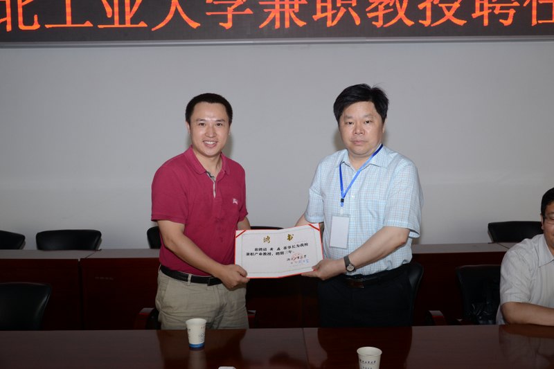 刘德富致欢迎辞。人事处副处长郑琼兵介绍了黄磊的基本情况。随后,刘德富为黄磊颁发了聘书,他希望能以担任兼职教授为契机,进一步整合北京校友资源,密切校企合作,搭建校企交流平台,通过校企合作实现学校与企业联合培养学生的无缝对接,把企业商业实战经验和信息引入到课堂。