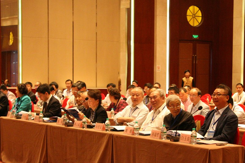 图片二:与会专家领导(第一排自左往右依次为:中国工程院院士俞建勇、丁传贤、郁铭芳、周翔、蒋士成、孙晋良、姚穆,中国纺织工业联合会副会长孙瑞哲,中国工程院秘书长白玉良)
