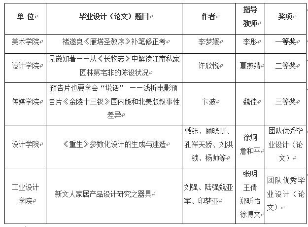 附件:南京艺术学院2013年江苏省毕业设计(论文)评优获奖情况