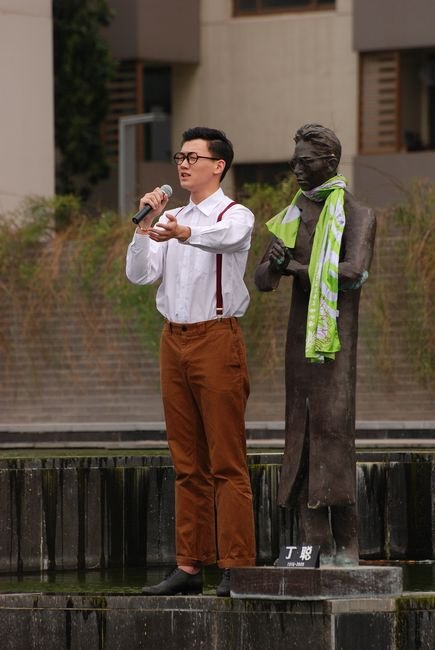 活动尚未开始,百岁泉边就聚集了一些师生,这次戏剧活动没有刻意宣传,有不少驻足围观的同学表示他们是路过活动场地时被这样的特殊形式吸引过来的。活动开始之后,来捧场的师生将整个百岁泉包围起来,被剧中人激情投入的吟诵所感染,现场不时传出欢呼声和鼓掌声,不少同学拿出相机来记录这一刻。傍晚的百岁泉,周围簇拥着年轻而充满朝气的学子,空中回响着名师大家的谆谆教诲,在夕阳下显得格外富有意韵,为周末的南艺校园增添了浓浓的人文气息。