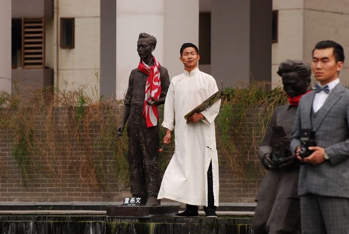 这次的活动打破了传统剧场下的观剧模式,采用行为艺术等当代流行元素来穿越古今,在一个开放的空间中,依托百岁泉内的雕塑,借南艺老校长刘海粟和从南艺(前身上海美专)毕业的五位艺术大家之口,表达了对有着百年历史的母校的守望和期盼。有不少同学说,这样的戏剧形式之前没有见过,如此新奇的演绎拉近了个人与“剧场”之间的距离,戏剧不再是一个“小众”的艺术,它应该是演员与观众可以亲密接触的平等互动。虽然时间不长,但许多观众都对此次的活动表达了惊喜和赞赏,并且对“下一次”充满了期待。据悉,此次拓展空间行为戏剧系列活动将围绕“百岁泉”主题在年内陆续推出行动二“百年的对话”和行动三“闪光的青春”,让我们拭目以待吧!(电影电视学院 庄飞燕)