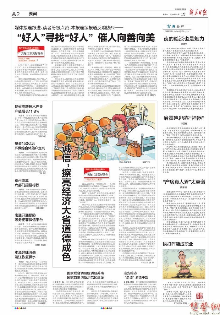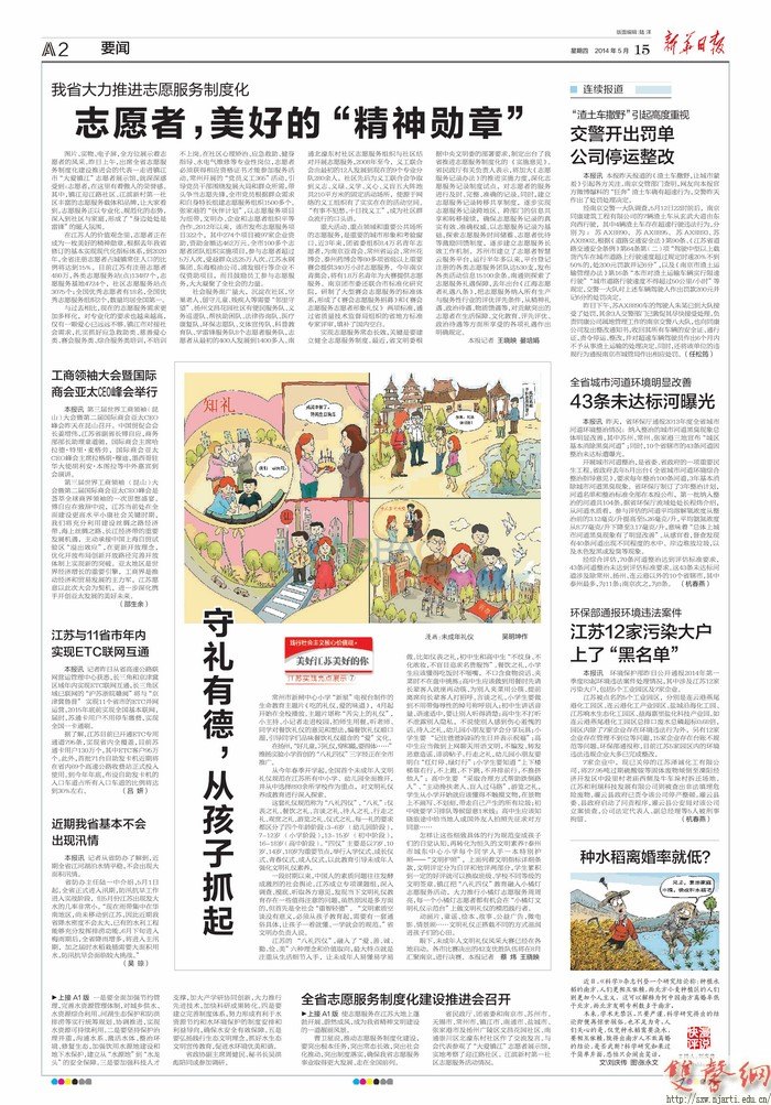说明:报纸版面中部为相关漫画