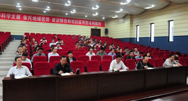 为提升应用型办学水平,他要求大家紧紧围绕学校改革发展大局,抢抓发展机遇,勇于迎接挑战,在实现学校快速转型、彰显应用型人才培养的办学特色上下功夫,始终牢记“四要”:要坚持改革发展,开拓进取,在谋划创新上求突破;要充分发扬民主,集思广益,在强化科学决策上求成效;要强化领导艺术,统筹协调,在维护学校和谐稳定上求发展;要加强内部管理、以人为本,在改进工作作风上求进步。就进一步落实推进学校发展规划,他指出,要牢牢把握应用型人才发展战略,以地方社会经济发展和市场需求为导向,切实转变人才培养思维,加强专业改革和建设;以提升办学硬件水平为目标,不断完善学校基础设施建设;以优化师资结构为重点,加强人才师资队伍建设;以服务育人为本,继续做好民生工程。