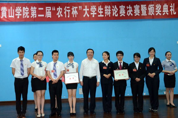5月21日下午,黄山学院第二届“农行杯”大学生辩论赛总决赛暨颁奖典礼在南区举行,至此,全校“我的中国梦·五月的鲜花”主题系列活动画上圆满句号。校党委书记徐成钢,党委副书记、纪委书记叶军,农行黄山分行副行长陈静、许健等领导出席观看总决赛并为获奖团队及个人颁奖。