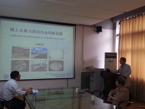 本网讯(通讯员田琦峰)5月21日下午,中国科学院长春应用化学研究所稀土资源利用国家重点实验室李德谦研究员在绿色化工过程教育部重点实验室会议室做了题为《稀土分离与清洁冶金的新进展》的学术讲座。化工与制药学院部分师生聆听了报告,报告会由化工与制药学院副院长田琦峰主持。