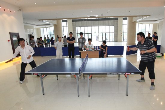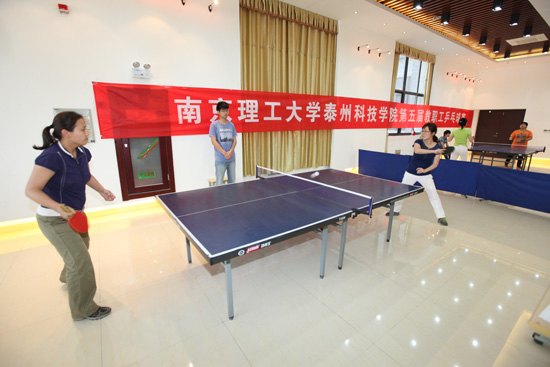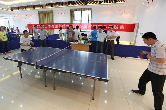 5月26日,南京理工大学泰州科技学院举行第五届教职工乒乓球赛。院长刘玉海,党委书记江鸿,副院长张永春,副院长、工会主席曹喜山出席开幕式并上阵参赛。