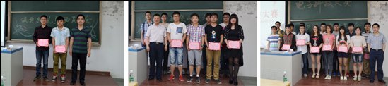 会上,主持人宣布了第六届电子科技大赛获奖学生名单,电子电气工程学院老师为获奖学生颁奖并合影留念。2011级电子科学与技术专业肖志鹏作为获奖学生代表发言。