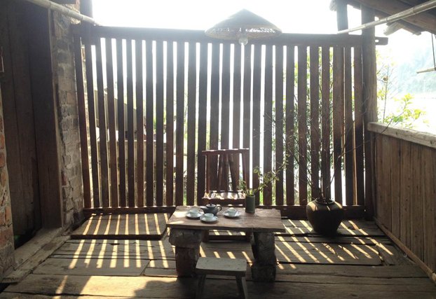 阳台的改造是我觉得最成功的地方,之前其实没这么想过,在改造前期有一天早上她烧柴火时,一直看着窗外,火都烧到里面的衣服了她才反应过来,幸亏有人经过救了她。后来我想,南方的冬天虽然房间里很冷,但是有阳光的地方还是挺暖和的,能不能把阳台改成一个整洁的,能够不用出门就能晒太阳的地方,还能喝喝茶什么的。于是我把岌岌可危的阳台进行了加固改造。