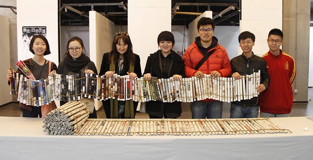 在7天的工作坊中,Ausra展示了她创作的书籍艺术作品以及立陶宛学生的优秀作品,探讨了旧书再设计及艺术装置设计的可能性,使学生们深刻体会并理解旧书的内容与形态,探讨旧书的内在价值。她还带领同学们重新解读旧书,认知传统纸媒的美感,并让大家动手制作,以立体思维对旧书进行再设计。
