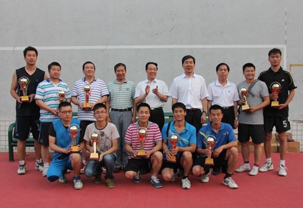 5月28日下午比赛结束后举行了发奖仪式,裁判长宣布了比赛成绩后,陈建国院长、校工会主席杜志傲等领导向获奖单位颁发了奖杯。