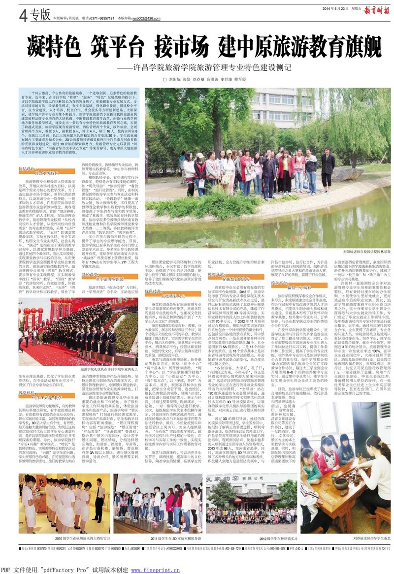 【教育时报】凝特色 筑平台 接市场 建中原旅游教育旗舰——许昌学院旅游学院旅游管理专业特色建设侧记