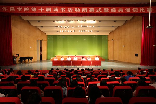 5月23日下午,由许昌学院党委宣传部、学生工作部、团委和图书馆联合主办的第十届“悦读·分享·和谐”读书活动闭幕式暨经典诵读决赛在艺术楼音乐厅举行。许昌学院党委副书记马超教授出席闭幕式,学校有关单位负责同志和许昌学院300余名师生一起观看了精彩的诵读决赛并参加了闭幕式。本次经典诵读决赛共有25名优秀选手参与角逐,选手们以生动的语言、真挚的感情,演绎了一段段中外经典篇章,在现场观众中引起了强烈共鸣,赢得了阵阵掌声。经过激烈的比拼,《祖国啊,我要燃烧》和《钢铁》夺得此次比赛一等奖,其余参赛作品分别获得二、三等奖。比赛结束后,文学与传媒学院苗阳老师对诵读比赛进行了中肯、精彩的点评。闭幕式上,出席会议的领导分别宣读了2014年读书活动信息检索大赛、征文比赛和经典诵读决赛获奖名单,并为经典诵读比赛获奖人员颁发了荣誉证书。马超副书记致闭幕辞。他指出,许昌学院读书活动内容丰富多彩,形式不断推陈出新,对加强大学文化建设,弘扬大学精神,引领高雅校园文化,营造浓厚的阅读氛围起到了积极的推动作用。他号召同学们多读书、好读书、读好书,让阅读成为校园内最美丽的景观,成为推动校园文化建设、营造书香校园的强大动力。(摄影:王军平)