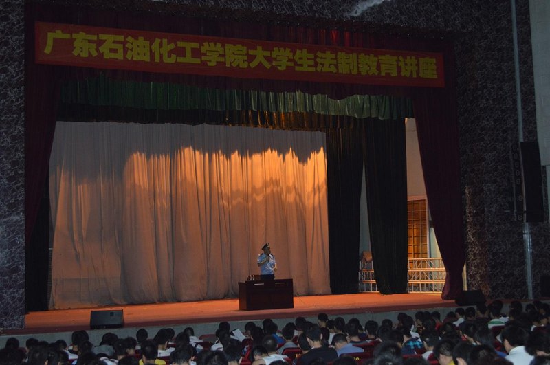 6月3日晚,由校保卫处主办,电信学院承办的广东石油化工学院大学生法制教育讲座在科技会堂举行。讲座特邀茂名市公安局茂南分局公共关系中队副队长林勇主讲。茂南分局公共关系中队指挥中心副主任杨振文、队长江帆等一行三人应邀出席。保卫处、学生处、电信学院的有关领导及学生共指挥中心副主任杨振文、1300多人聆听了讲座。讲座中,林警官首先从整体上介绍了国内外的安全形势。接下来他引用近几年发生在校园内的典型案例,分析了当前青少年犯罪的原因,提出在大学生中增强法制观念的重要性和必要性。最后就如何做一个遵纪守法的大学生,林警官向同学们提出建议:一是从小事做起,做守法公民,二是学会处理人际关系,三是要树立现代法制观念。 整场讲座,以案释法,以法论事,深入浅出,生动精彩。学生处副处长陈荣基对本次讲座进行总结,提出在校大学生要知法守法,远离违法犯罪,正确定位角色,活出精彩人生。