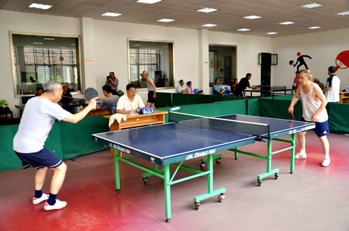 6月3日下午,省直机关老年乒乓球代表队来访湖北工业大学,与校老年乒乓球队在离退休活动中心一楼乒乓球室进行了友谊赛。