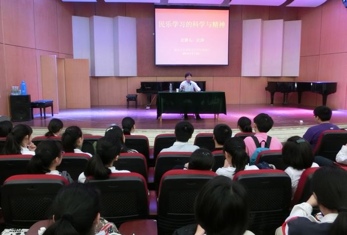 作为土生土长的南京人,江洋曾就读于南艺附中,2003年考入中央音乐学院,如今已经成为中央音乐学院琵琶专业讲师,是当今中国最受关注的青年琵琶演奏家、作曲家,先后获得中国音乐金钟奖琵琶比赛金奖、CCTV全国民族器乐大赛琵琶比赛第一名等殊荣。在演奏会紧张排练的间隙,江洋还特意走进母校,为附中民乐专业的学生举办了一场题为“民乐学习的科学与精神”的专题讲座。(附中供稿)