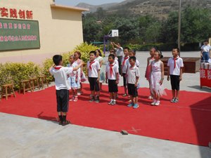 5月29日,山东旅游职业学院支教团部分成员和图书馆读者协会骨干们一行二十多人在许玉庆老师和姜妍老师的带领下,来到章丘市文祖镇鹁鸽崖小学,与百名小学生共度国际六一儿童节。