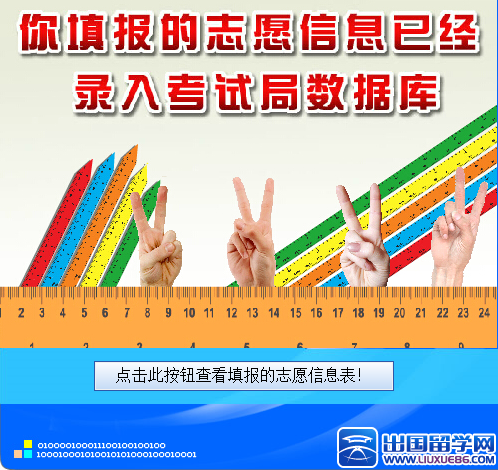 第五步,点击“确认”按钮,提交志愿 出现以下画面表示志愿已经提交成功,点击按钮可以查看所报学校和专业。 点击“修改志愿”按钮,进入志愿修改界面,修改流程参考第四步。