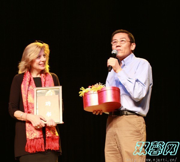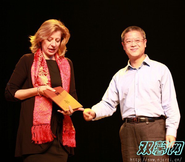 4月27日下午,影视学院师生在黄瓜园剧场里为Andrea Brooks教授举行了隆重而热烈的欢送会。南京艺术学院院长邹建平首先为Andrea Brooks颁发了“南京艺术学院客座教授”荣誉证书,她成为南京艺术学院历史上首位受聘的表演类外籍客座教授。影视学院党总支书记钱态对Andrea Brooks教授的精彩讲学和倾情付出表示衷心的感谢,并代表学院向其赠送了礼物。学生们抑制不住依依惜别之情,纷纷上台表演了歌剧、诗朗诵等节目,将现场气氛推向了高潮。学生们也以班级为单位向Andrea Brooks教授赠送了充满浓郁中国特色的旗袍、折扇等礼物,并同这位可爱的英国老师合影留念。