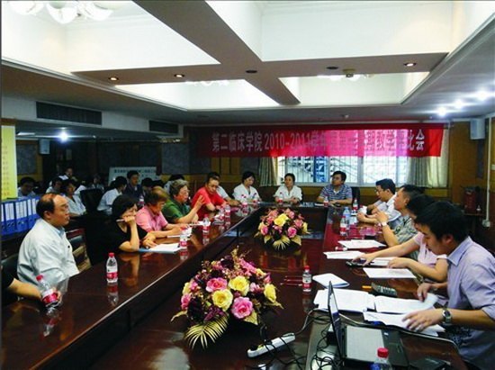 为检查教研室教学工作开展情况,强化教学管理,提升教学质量, 附二院2010-2011学年第一学期教学质量评比会于4月29日在蓝盾五楼会议室召开。会议由医院教务处杜之渝副处长主持。院领导左国庆副院长、院督导专家、承担上学期教学任务的教研室分管教学主任、教学秘书及教学处工作人员共50余人参加了会议。