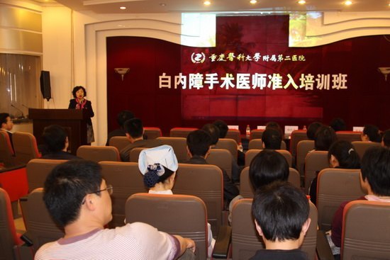 5月4日,由重庆市卫生局医政处主办,附二院眼科承办的重庆市首届百万贫困白内障项目手术医生培训班在医院多功能厅举办。重庆市多家医院的专家教授参加了此次培训班的授课,40多个区县的50多名白内障手术医生及部分眼科主任参加了此次培训。