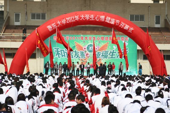 5月7日,由学生工作部(处)主办,大学生心理健康教育中心、校学生会心理调适部承办的以“和谐友善,幸福生活”为主题的2011年大学生心理健康节在校田径运动场开幕。学生工作部(处)、团委、教育科学学院负责人,以及各学院党总支副书记、团总支书记、学生代表共2000余人参加了开幕式。