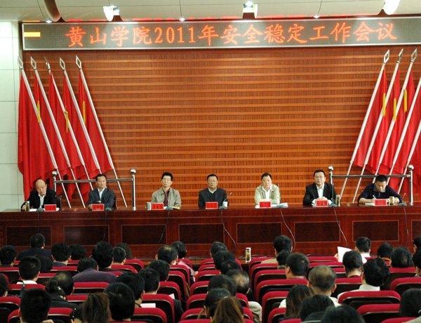 会上,胡家俊从学校领导高度重视、加强队伍建设、重视思想政治工作、建设与完善技防能力和落实安全稳定责任制等五个方面通报了黄山学院2010年以来校园安全稳定工作情况,并从安全类、事故类、外事类等角度剖析了影响到黄山学院安全稳定的隐患因素。