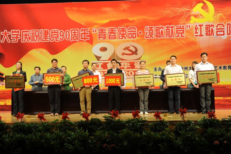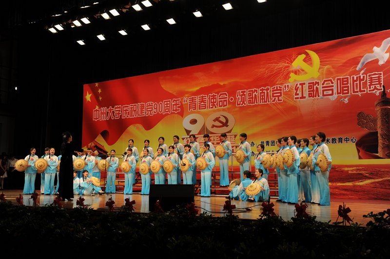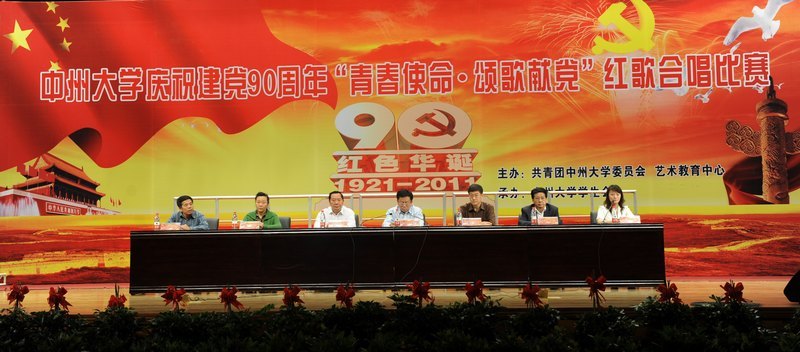 2011年5月13日下午,中州大学庆祝建党90周年“青春使命.颂歌献党”红歌合唱比赛暨共青团创先争优表彰大会在学生活动中心体育馆隆重举行。校领导习谏、司福亭、苏炜、李绍环、刘省贵出席活动,校长助理陈冠玉、各学院党总支书记、院长、各个学院分团委书记和各学院师生代表参加了本次活动。