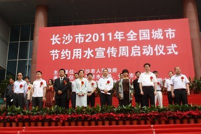 长沙市市委宣传部副部长、市文明办主任杨长江宣布,“长沙市2011年全国城市节约用水宣传周”活动正式启动。随后,与会领导、学生与观众参观现场关于节水环保的展览。