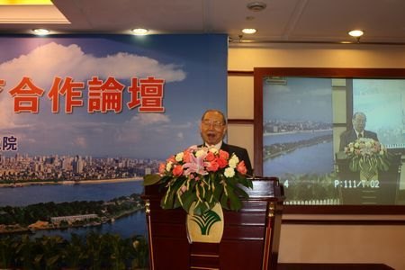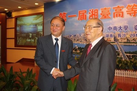 梅可望董事长为闭幕式致辞。他说,在94岁的高龄,看到湘台两地的高校领导、专家像几十年的老朋友一样,促膝长谈,共谋发展,他内心的快乐不知如何形容。梅老向台湾嘉宾们热情地介绍起湖南人霸蛮的个性,并说,台湾人也是中华文化的继承者之一,此次湘台高等教育合作论坛意义重大,开创了历史,今后两地合作还会更加密切,并取得完满成功。