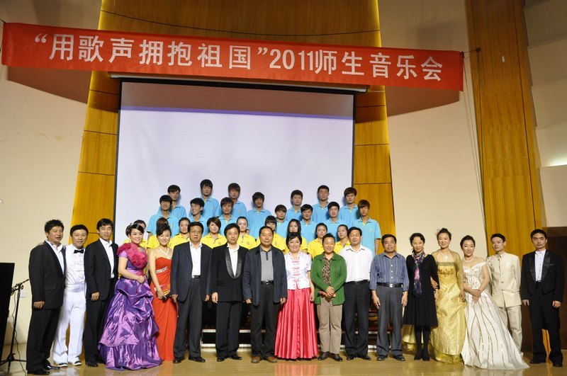 为庆祝中国共产党建党90周年,5月12日晚,音乐舞蹈学院、艺术教育中心在学校学术交流中心成功举办了“用歌声拥抱祖国”2011师生音乐会,校领导司福亭、李绍环、刘省贵、周长根、校长助理陈冠玉出席活动,全校各学院师生代表近500人参加了音乐会。