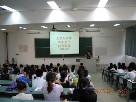 为认真执行重庆市政府《关于将大学生纳入城乡居民合作医疗保险的实施意见》(渝府发《2007》113号)文件精神,减轻患病大学生家庭经济负担,让更多的大学生了解大学生医保相关政策,及时解答大学生医保运行中出现的问题。在学生处、团委的大力支持下,5月18日晚,社区医疗中心医保管理员和缙云校区医务室负责人,在缙云校区A3-1401教室,为缙云校区学生举行了医保专题培训和现场答疑。参会学生干部、学生代表、医保联络员共计150余人。此次培训重点强调了参保学生门诊、住院就医报销方式;危、急重症转诊流程及转诊注意事项;并对大学生医保性质、参保条件、参保注意事项以及2011年~2012年学年度大学生医保参保的要求进行了讲解。培训中,针对学生关心的医保报销比例、报销方式、医保卡遗失的补办等10多个问题,医保员均作了现场解答。