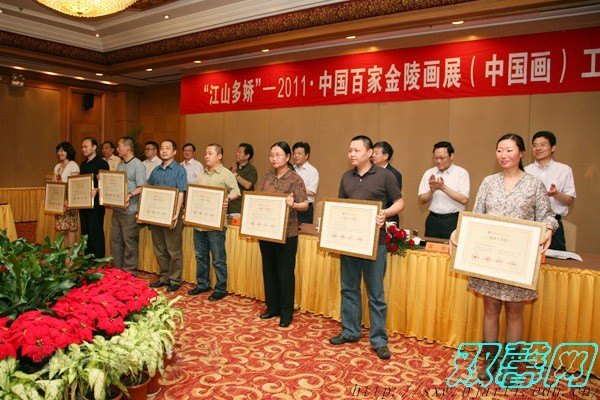 5月18日上午,由中国美术家协会、江苏省委宣传部、江苏省文化厅、江苏省文联共同主办的“现实·超越”2010中国百家金陵画展(油画)“组织工作奖”授奖仪式在西康宾馆顺利举行,江苏省美术家协会油画艺委会获“组织工作奖”,南京艺术学院艺术创作与实践处处长金捷代表江苏省美术家协会油画艺委会,上台领奖。