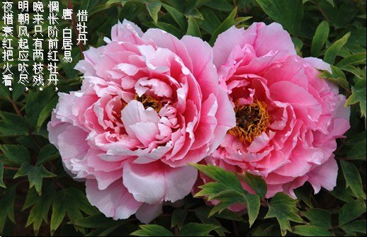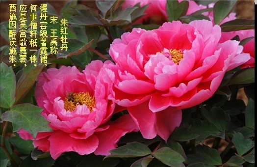 奔放的牡丹,青春的学子,都用各自的方式,彰显着自己的自强与不息,都在舞动着自己飞扬的青春。绚丽的牡丹,激情的青年,两相映衬,更显出校园里的风华正茂,激情飞扬。鲜艳的牡丹,纯情的师生,他们都在奋力拼搏,激扬生命,追逐梦想,让青春的足迹与理想同行,与学校同荣,与祖国共进。