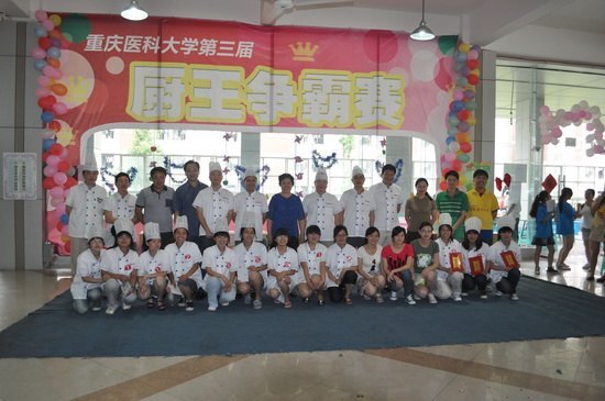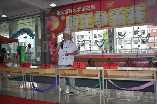 中华饮食源远流长,博大精深。为传承中华饮食文化,培养同学们动手能力,养成良好的饮食习惯,领会感恩之心,重庆医科大学第三届“厨厨王争霸”在经过初赛、复赛之后,2011年5月20日下午,晋级决赛的八组选手在缙云校区进行了激烈的决赛。学校副校长、缙云校区管委会主任邓世雄教授,缙云校区管委会办公室主任兼校长办公室副主任李文淑,关工委副主任雷晓坤教授,缙云校区管委会周平远副主任,后勤管理处朱伯平副处长,保卫处刘刚副处长、后勤管理处张永合副处长,校团委龚棣书记及校区职能部门老师亲临比赛现场。