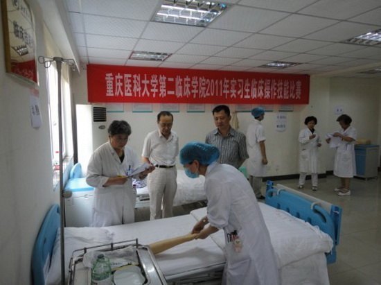 为提高临床实习生临床操作水平、广泛促进带教老师加强实习生临床技能培养及临床教学质量提高,5月9日至10日,2011年第二临床学院实习生临床操作技能比赛在统战部二楼临床技能培训中心举行。这是附二院举办的第一届实习生临床技能比赛,是医院举办大型教学主题活动的一个创新举措。来自医院22个科室的46名实习生参加了比赛,部分教学基地带教老师观摩了比赛的整个过程。