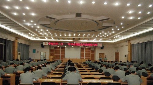 21日晚,军区联合考核组李旭副主任一行抵达中南大学,组织中南大学2011届毕业国防生参加毕业军事理论考核。考核组首长对中南大学国防生严肃的考场纪律和有序的组织实施给予了高度评价。