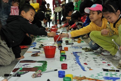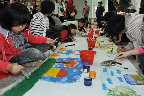 上午11点钟,绘画活动结束。约120米的画布上,展示了小朋友们110幅作品。他们把绘画材料收拾好,把现场清理干净,展现出了少年儿童良好的素质和品德,在场参观的大人纷纷赞扬小朋友们超强的环保意识。