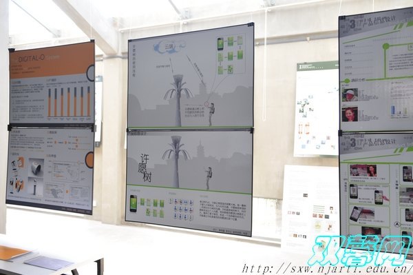 在鸡鸣寺许愿,可以通过移动终端与许愿树相链接的方式把愿望永久保存,并且可以随时随地的查看自己的愿望;在德基广场购物,3D全息投影让你在试穿衣服的时候不用镜子就可以看到自己背后甚至各个角度的试穿效果,不用重复试穿同时就可以对比观看试过的N套衣服的效果;在南京博物院参观,3D动画模拟和古代场景再现,让你从视觉的享受冲击转到精神的深层思考,给你带来不一样的参观体验……一个个新鲜的创意,一件件新奇的交互设计产品在工业设计学院一楼多功能厅的《产品信息设计》课程作业展上全新推出。