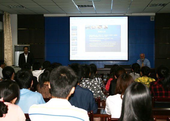 Xinlong Weng博士与鲁东大学五个学院的部分负责人就工程类专业4+1本硕连读项目进行了说明,与数学学院教师就数学教育联合研究课题达成了合作意向,并为生物科学学院学生做了精彩的布里奇波特大学简介与出国说明讲座。