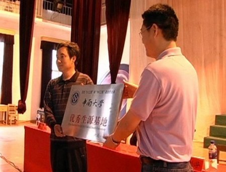 5月26日,校招生办主任付刚华一行三人,来到革命老区平江县,在平江一中影剧院举行了“中南大学优秀生源基地”授牌仪式。仪式由平江县教育局局长吴定辉主持。