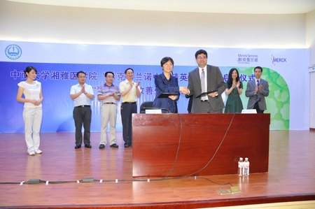 6月2日,中南大学湘雅医学院与默克雪兰诺公司共同主办的“致力科学改善生命”论坛上,“默克雪兰诺中国精英奖学金”项目宣布在湘雅医学院正式设立。湘雅医学院党委书记张步新教授与默克雪兰诺中国首席财务官柯睿谋先生分别代表双方签署合作协议,标志着“默克雪兰诺中国精英奖学金”落户湘雅医学院。仪式由湘雅医学院党委副书记赵永正主持。
