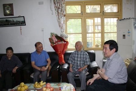 6月7日是中南大学教职工中年龄最大、目前健在的唯一一位历经过二万五千里长征的老红军、老党员蒲润98岁的生日。上午,校党委书记高文兵、常务副校长黄健柏以及学校办公室、离退休工作处、湘雅医学院等有关部门负责人前往蒲老家贺寿,并代表学校党政向蒲老送上了礼品和生日的祝福。