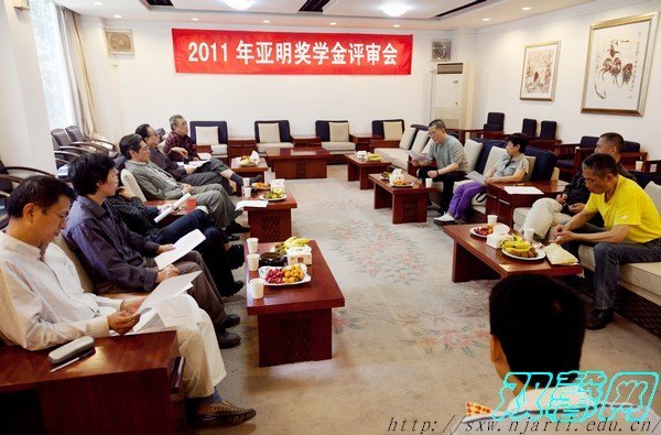 6月14日,南京艺术学院2011年亚明奖学金专家评审会在美术学院举行,评审工作由江苏省国画院院长、亚明奖学金专家评审委员会组长周京新教授主持,来自校内外的10名专家参加了评审工作。本次参评的37件作品,涵盖了中国画人物、花鸟、山水领域。