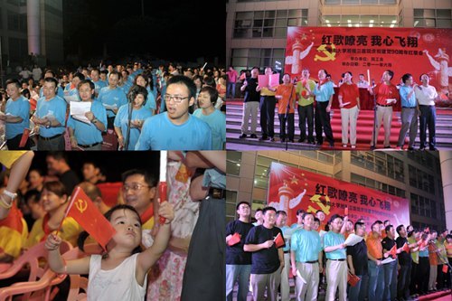 6月16日晚,湘雅三医院健康管理中心前坪鼓声喧天、歌声沸腾,由湘雅三医院工会主办“红歌嘹亮,我心飞翔”庆祝建党九十周年红歌拉歌会激情上演。